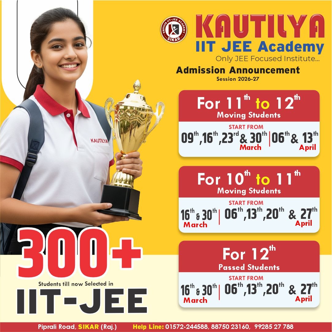 Kautilya IIT-JEE | NEET Academy Sikar is a leading coaching institute for IIT-JEE and NEET preparation, providing students with the right tools and guidance to achieve their academic goals. Known for its highly qualified and experienced faculty, Kautilya Academy ensures that students receive personalized attention and stay updated with the latest trends in competitive exams.
